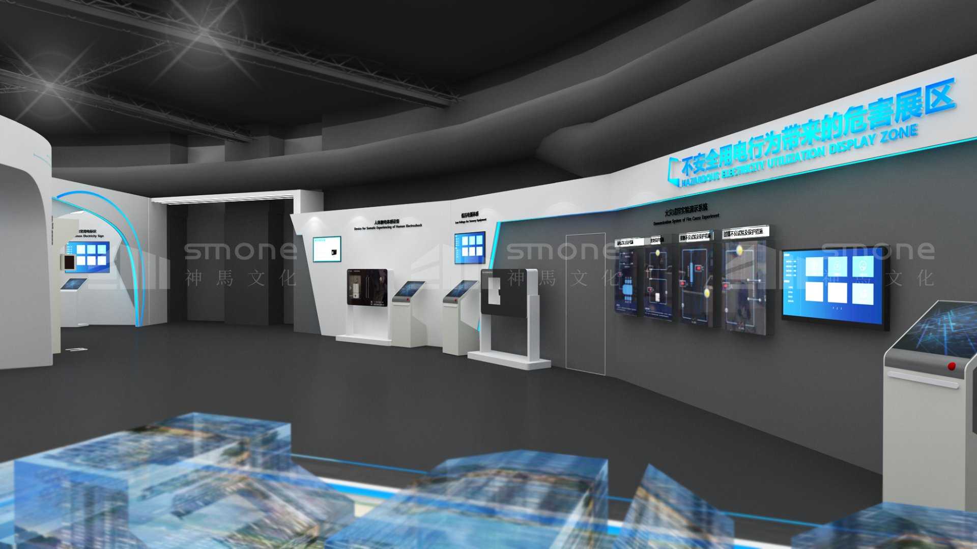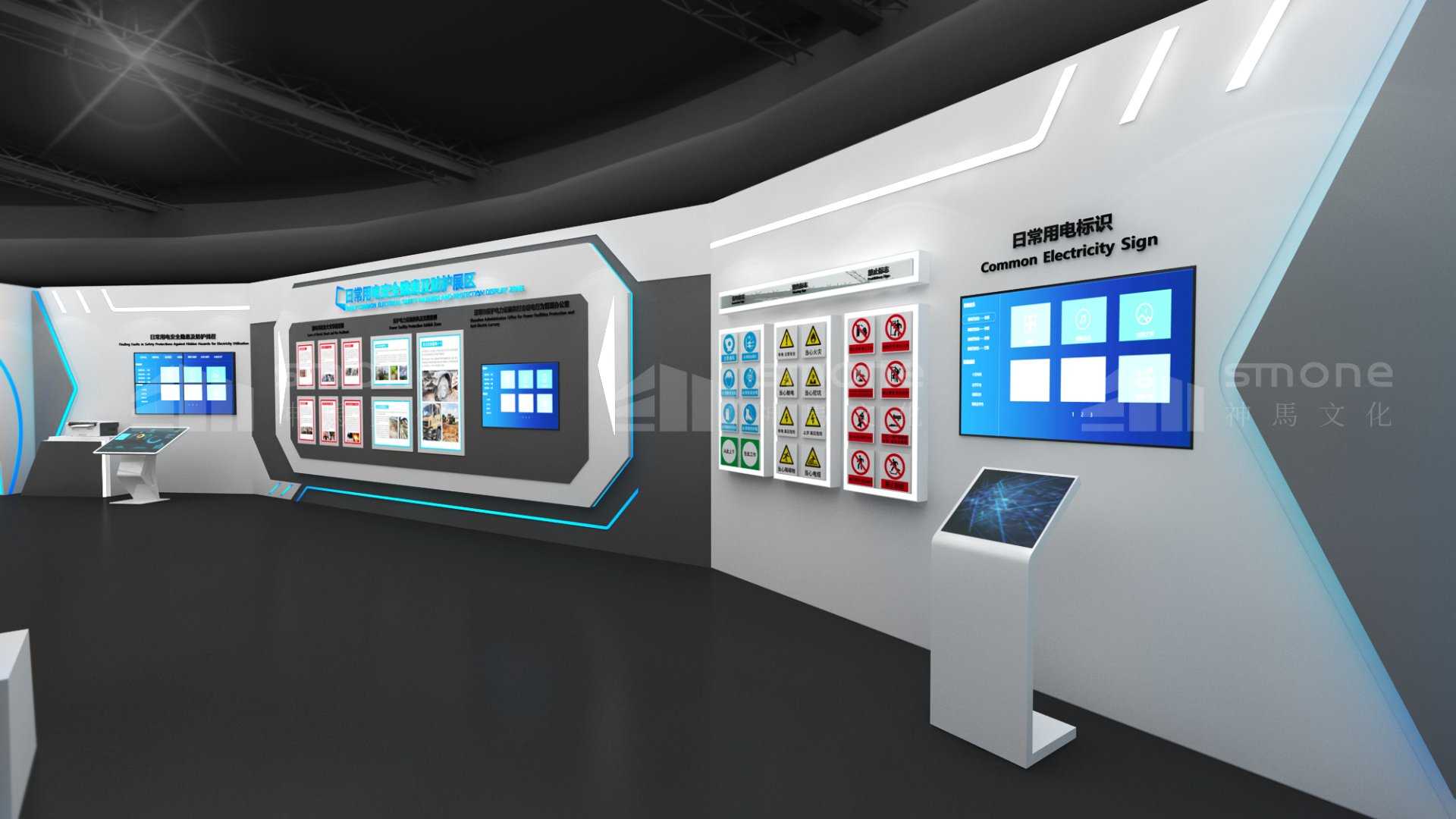 深圳市安全用電體驗展覽總共劃分為四個區域,分別通過供用電展示、不安全用電行為危害展示、日常用電安全隱患及防護展示以及用電安全領域中的新成果、新技術和新應用的展示,讓訪客全方位了解用電安全及其領域的技術成果。