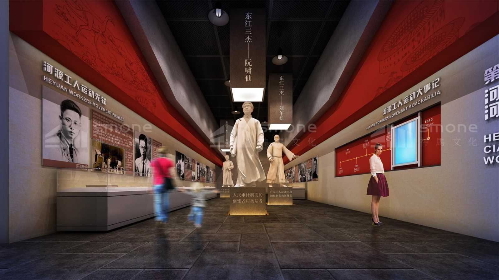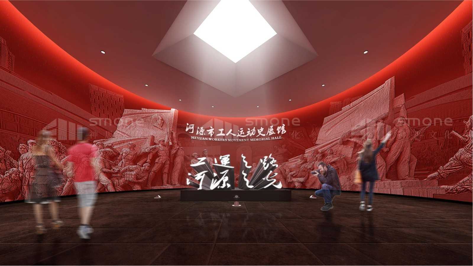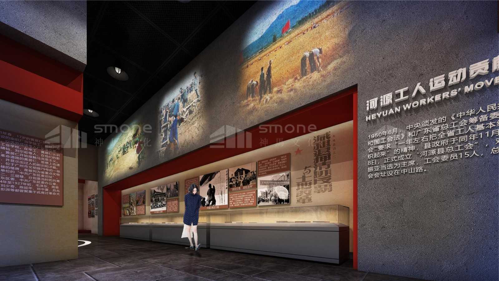 針對該項目面積小、事件少的特點,打造小而精,小而特的差異化。將河源工運任務等的特色最大化展示,結合多媒體變現手法,告別傳統展陳的紀念館,打造出具有特色的“新”展示空間。