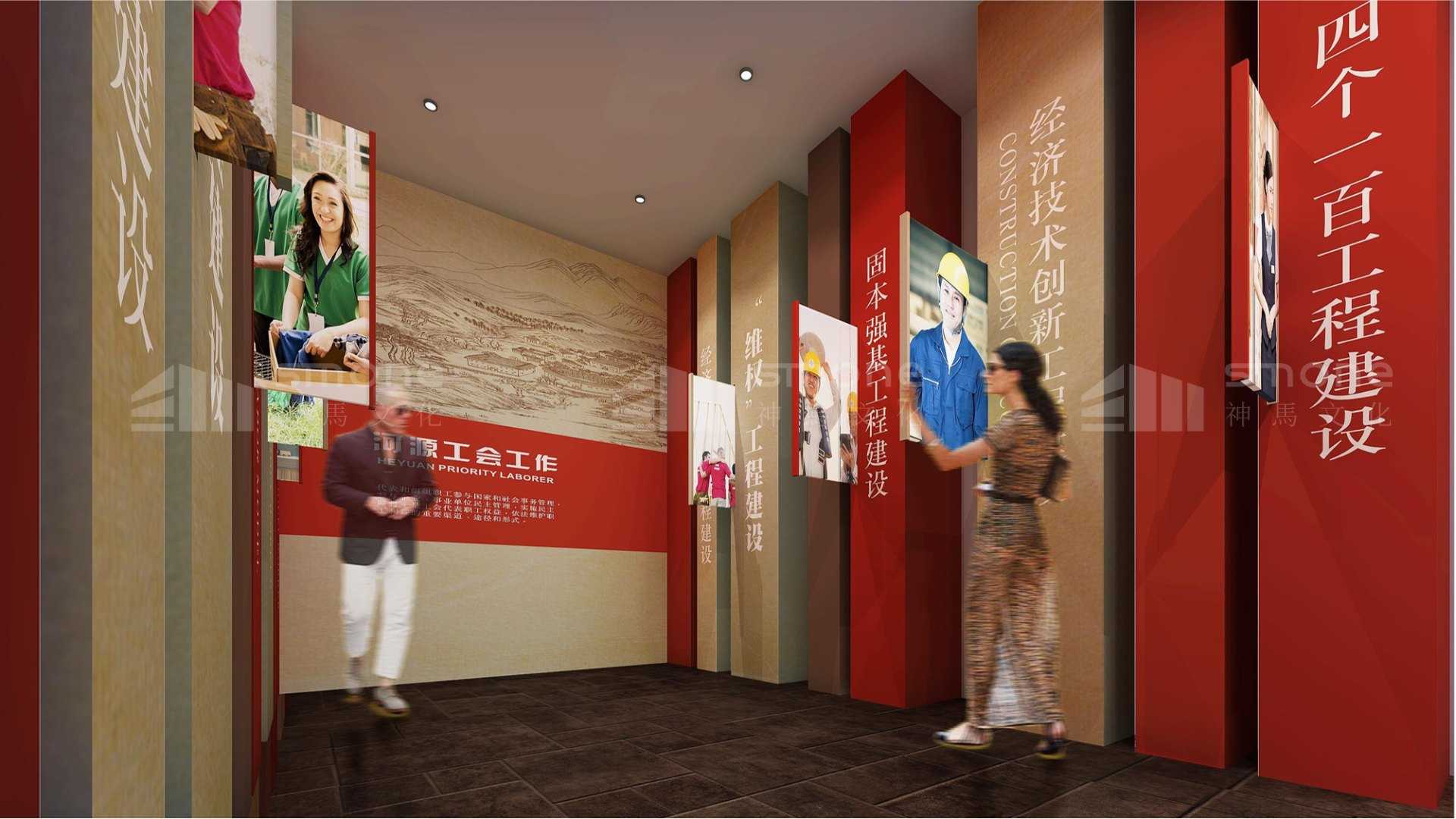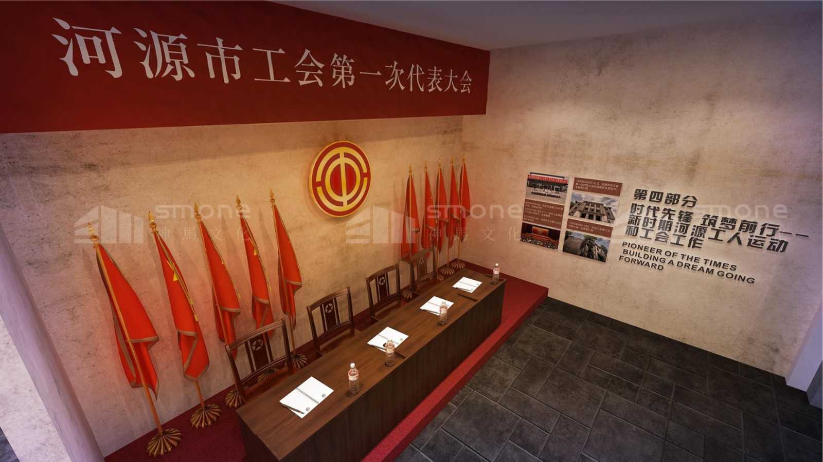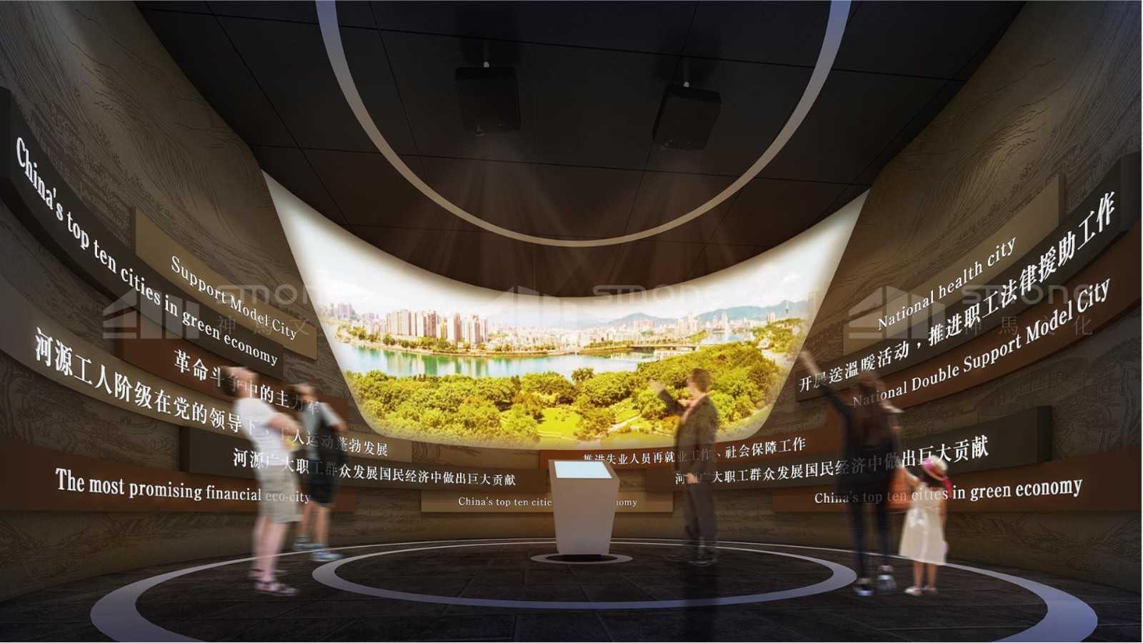 針對該項目面積小、事件少的特點,打造小而精,小而特的差異化。將河源工運任務等的特色最大化展示,結合多媒體變現手法,告別傳統展陳的紀念館,打造出具有特色的“新”展示空間。