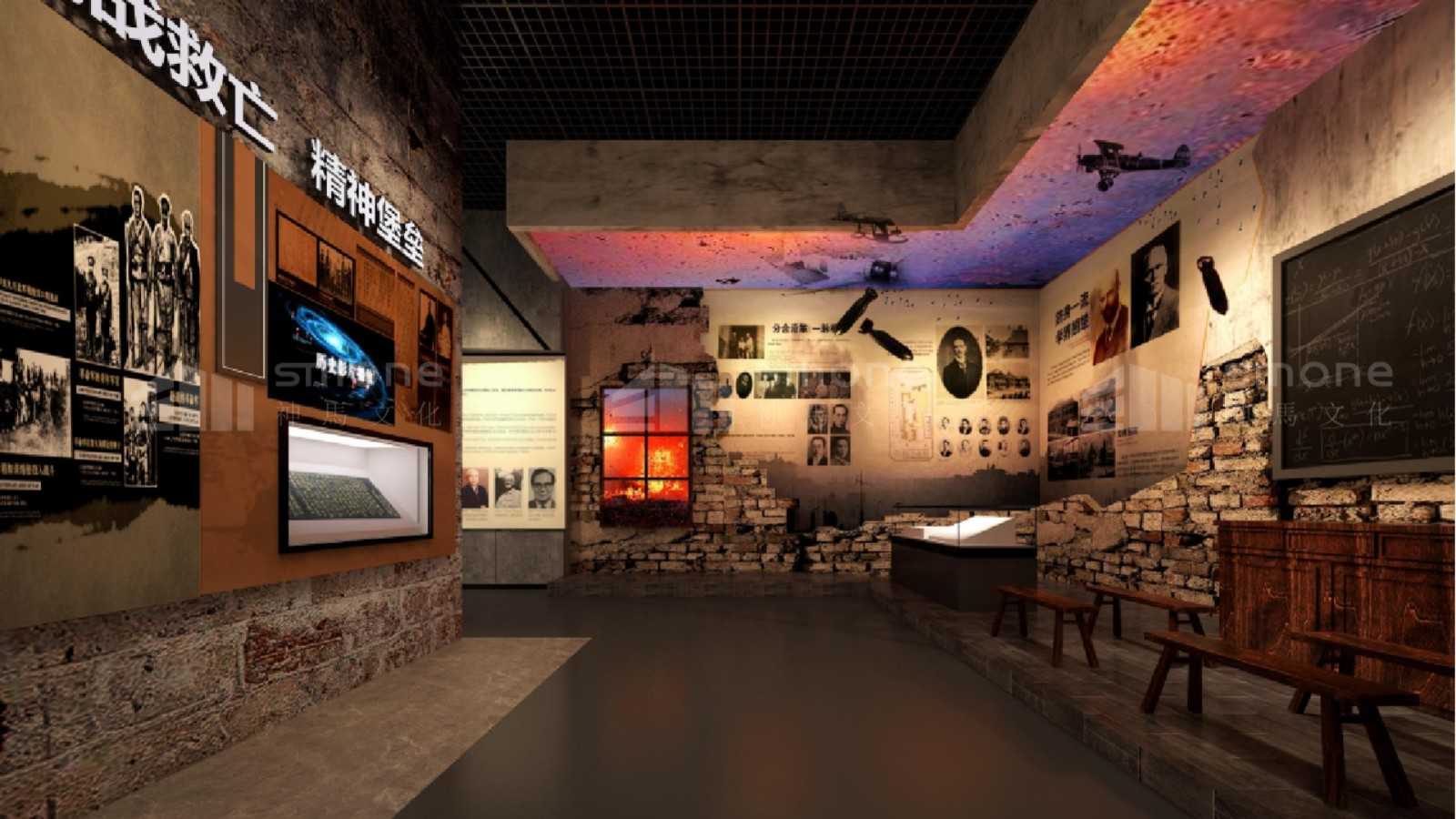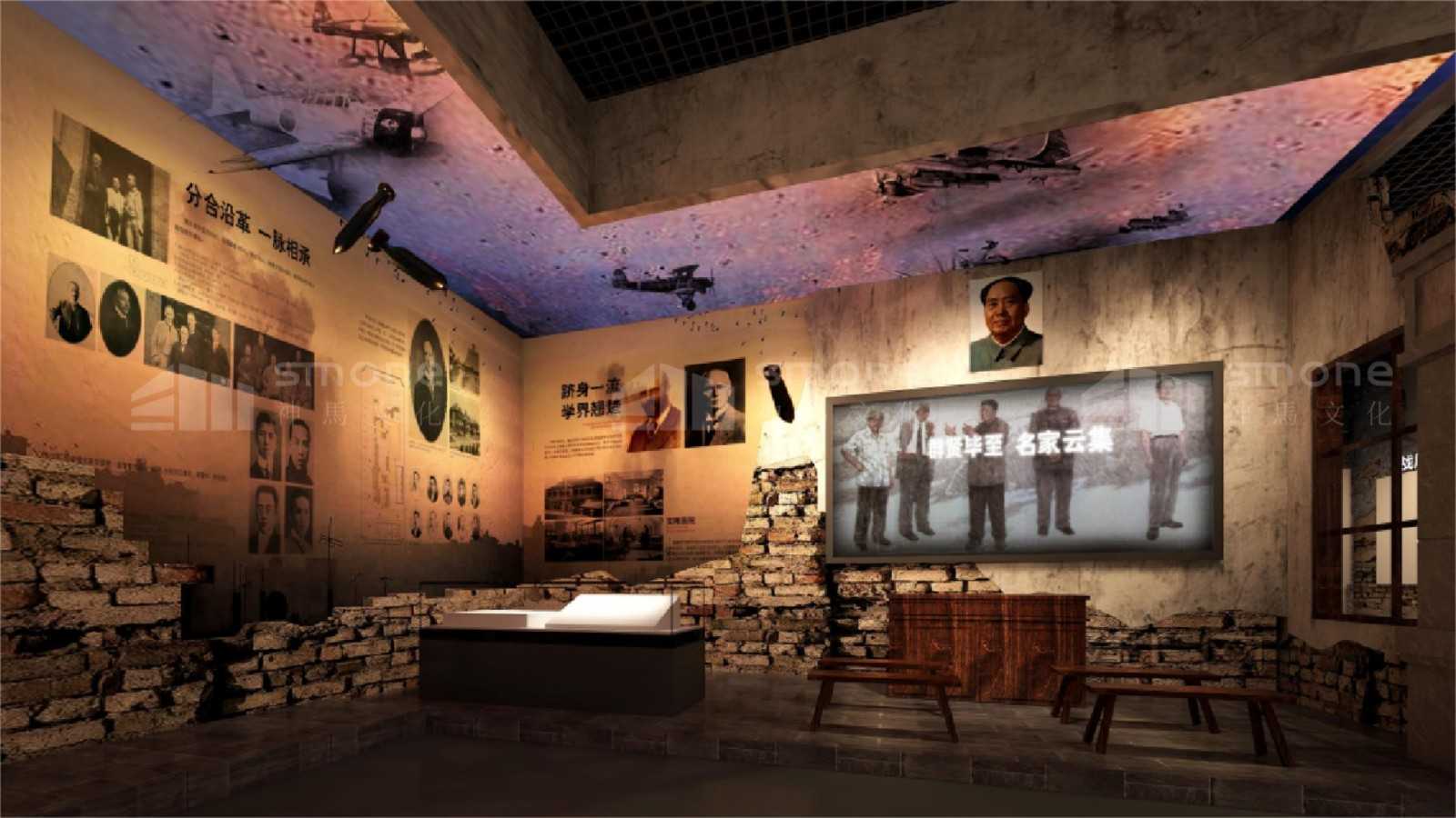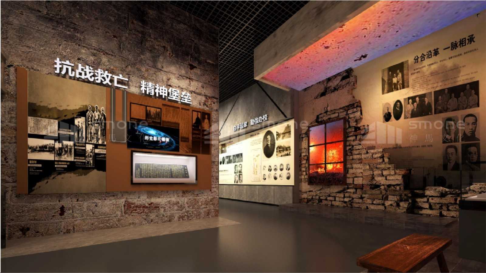 展示空間劃分為三個(gè)部分,其中在第三個(gè)部分中與科技元素和多媒體技術(shù)相結(jié)合,傳統(tǒng)歷史的氛圍到全新科技感氛圍的轉(zhuǎn)變,反襯出南昌大學(xué)的負(fù)重前行,不斷革新。